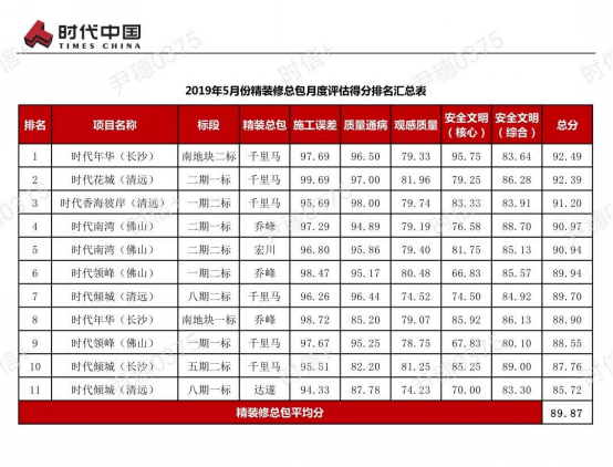 重大喜報(bào)|深圳千里馬裝飾集團(tuán)包攬時(shí)代中國2019年5月份精裝修總包月度評估排名前三甲