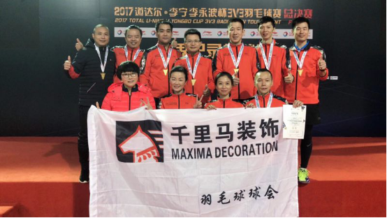 12月2-3日,“2017道達(dá)爾李寧李永波杯3v3羽毛球賽世界紀(jì)錄挑戰(zhàn)賽”團(tuán)體賽在北京李寧中心隆重舉行,本次賽事共吸引了全國8000多位羽毛球愛好者積極參與,創(chuàng)下參賽人員最多的世界紀(jì)錄,比賽分為十多個(gè)組別,有3v3比賽,其中包括公開組、高校組及商學(xué)院組。深圳千里馬球會(huì)參加了35歲男團(tuán)和混團(tuán)兩個(gè)組別的比賽。 場館外天寒地凍,場內(nèi)熱火朝天,加油、吶喊聲不絕于耳。我們參加的比賽單局21分,一局決勝負(fù),11分后雙方換場地,,打到21分后另一方必須勝2分才算獲勝,最多達(dá)到30分封頂,三盤贏兩盤即算勝方,2日是35歲混團(tuán)比賽,我方隊(duì)員發(fā)揮敢打敢拼的精神,一路過關(guān)斬將,沒有遇到太大的困難就挺進(jìn)決賽,決賽對(duì)手是在業(yè)余羽毛球界同樣有名的上海麗仁股分隊(duì),對(duì)手實(shí)力不俗,我方主力隊(duì)員倪超大腿受傷的情況下以大比分1:2屈居亞軍。 3日是男團(tuán)比賽,為了拿到渴望已久的冠軍,我們?cè)缭鐏淼綀龅剡m應(yīng)燈光及風(fēng)向,為即將到來的大戰(zhàn)做好充分準(zhǔn)備,經(jīng)過較量,千里馬戰(zhàn)隊(duì)順利進(jìn)入決賽,就像約定好的一樣,顧總的麗仁股分隊(duì)如愿與我們會(huì)師決賽,論實(shí)力,我們混團(tuán)和麗仁股混團(tuán)旗鼓相當(dāng),誰輸誰贏全憑臨場發(fā)揮,而論男團(tuán)實(shí)力,我們還是自認(rèn)為略勝麗仁股一籌,兩場同時(shí)開球,我們的一雙是林桂寶和郭貽帥,二雙是韓束光和龍俊,我們的四個(gè)隊(duì)員都是在業(yè)余羽毛球界大名鼎鼎的人物,比賽中,他們穩(wěn)打穩(wěn)扎和對(duì)手比拼實(shí)力和基本功,比賽都是按著我們的節(jié)奏在打,兩場比賽均勝對(duì)手幾分,大比分2:0 贏得比賽。
