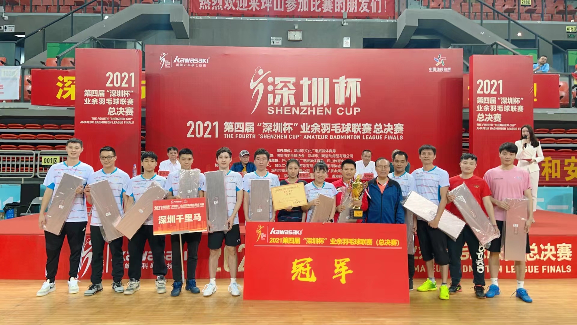 11月28日,2021第四屆“深圳杯”業(yè)余羽毛球聯(lián)賽總決賽在坪山體育中心落幕。 經(jīng)過緊張激烈的角逐,最終深圳千里馬力克群雄,奪得了本屆“深圳杯”的冠軍。 △左一為深圳千里馬李向東董事長 “深圳杯”聯(lián)賽是深圳市業(yè)余規(guī)格最高的民間羽毛球賽事,歷時1個月,覆蓋全市11個行政區(qū),設(shè)坪山、龍崗、南山、光明4大分站賽,最大程度覆蓋了全市的羽毛球愛好者,真正做到了全民參與。 總決賽從各分站賽脫穎而出的16支代表隊伍展開最終較量,爭奪“深圳杯”最高榮耀!最終經(jīng)過145場435局比賽較量,深圳千里馬力克群雄,奪得了本屆“深圳杯”的冠軍。 深圳千里馬隊員代表總決賽選手宣誓