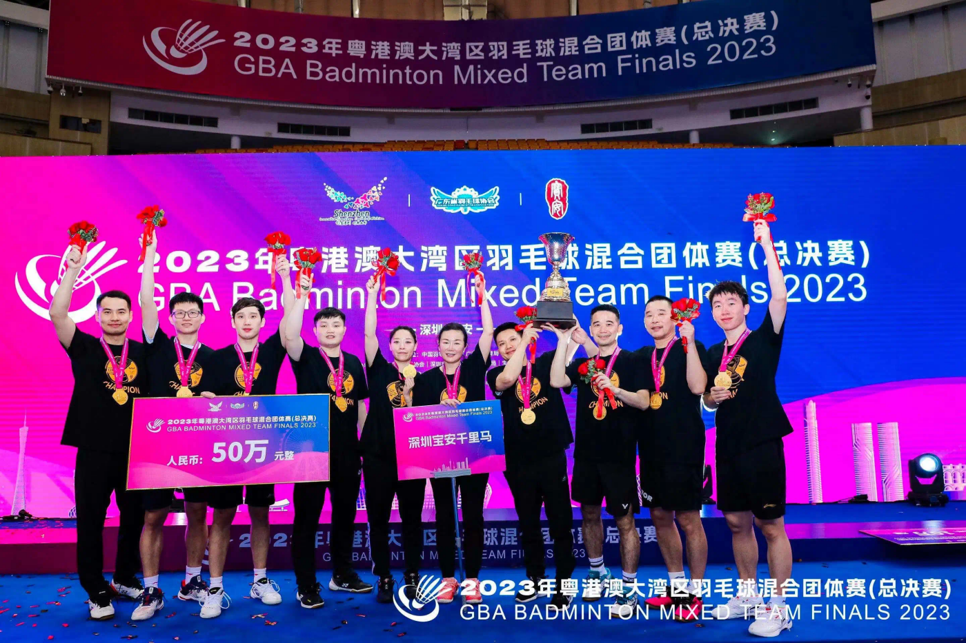 11月11日,2023年粵港澳大灣區(qū)羽毛球混合團體賽(總決賽)在寶安體育館開拍。共有來自香港、澳門、廣州、深圳、珠海、佛山、東莞、中山、惠州、江門、肇慶等11個大灣區(qū)城市羽協(xié)組隊參賽,今年賽事更是擴大“朋友圈”,力邀馬來西亞、泰國羽毛球協(xié)會精英選手參賽,16支精英隊伍148 名高水平選手齊聚深圳。本次比賽由中國羽毛球協(xié)會、廣東省體育局指導(dǎo)、廣東省羽毛球協(xié)會、深圳市文化廣電旅游體育局、寶安區(qū)人民政府共同主辦,寶安區(qū)文化廣電旅游體育局承辦。 深圳寶安千里馬隊代表寶安區(qū)人民政府參賽,在淘汰賽階段和1/4決賽上分別戰(zhàn)勝了廣東省羽毛球協(xié)會、香港之星羽毛球會,最終以2:0戰(zhàn)勝馬來西亞LCBA隊問鼎灣區(qū)之巔,奪得2023年粵港澳大灣區(qū)羽毛球混合團體賽(總決賽)總冠軍。 比賽現(xiàn)場 比賽現(xiàn)場 總決賽以打造灣區(qū)國際性、區(qū)域性品牌賽事為目標(biāo),全力打造高水平、高質(zhì)量、高品質(zhì)的灣區(qū)運動新品牌。今年賽事延續(xù)2022年推出“百萬獎金”,冠、亞、季軍獎勵分別高達(dá)50萬、30萬、10萬獎勵。總冠軍得主、深圳寶安千里馬隊路源表示,本次賽事競賽水平很高,隊伍在頂住了馬來西亞多輪強勢進攻,為深圳、為寶安將冠軍寶座留在深圳。