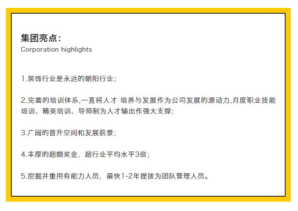 經(jīng)過10余年的發(fā)展,形成了以建筑裝飾產(chǎn)業(yè)為主體的專業(yè)化自營集團公司。集團高度重視人才培養(yǎng),視人才為企業(yè)根本,以人才戰(zhàn)略為依托,建立并完善了人才資源庫,關心員工