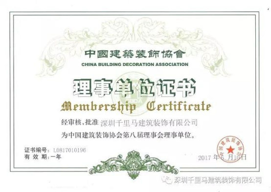 近日,中國建筑裝飾協會發布了第八屆理事會理事單位新成員名單,深圳千里馬建筑裝飾有限公司有幸成為其中一員。