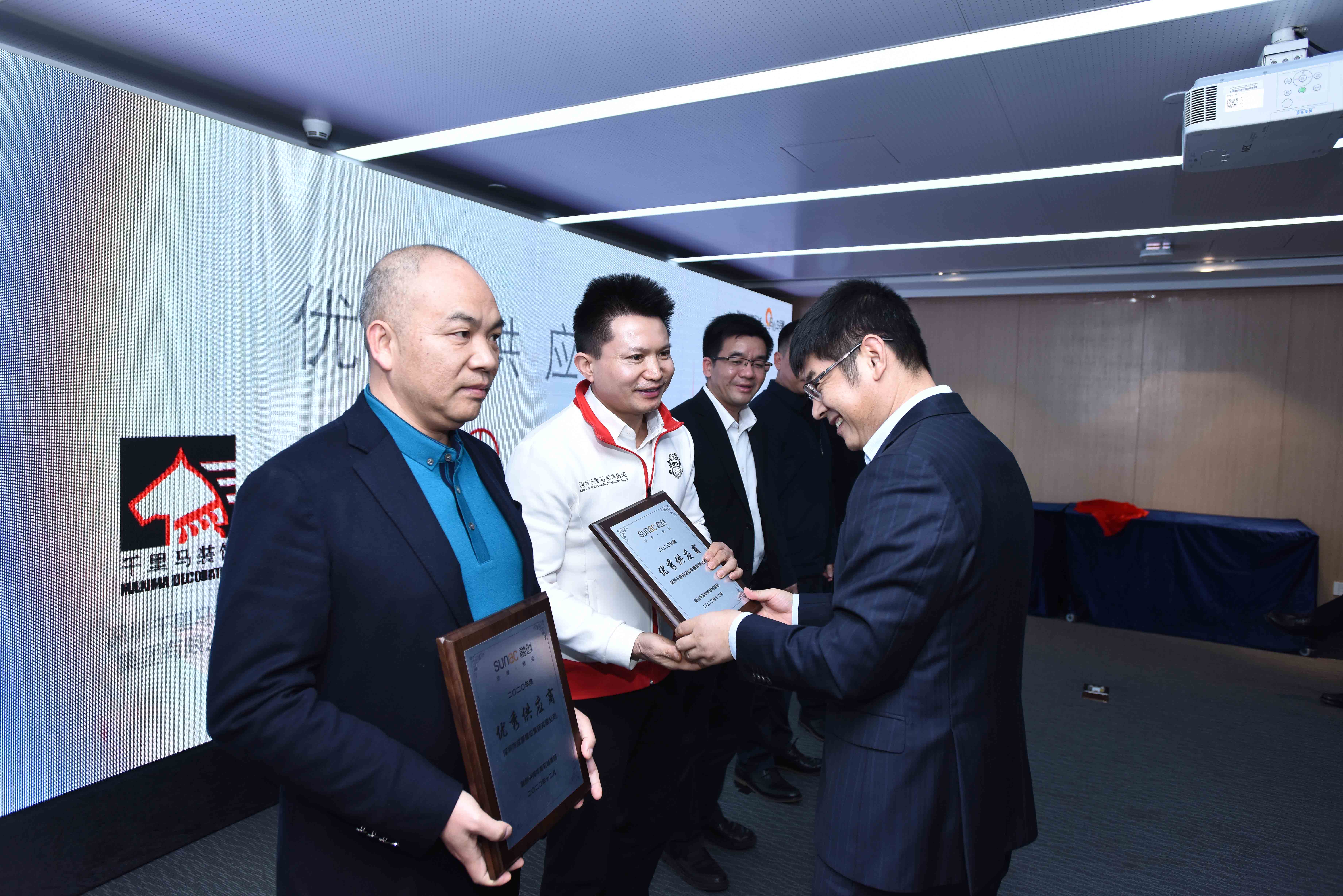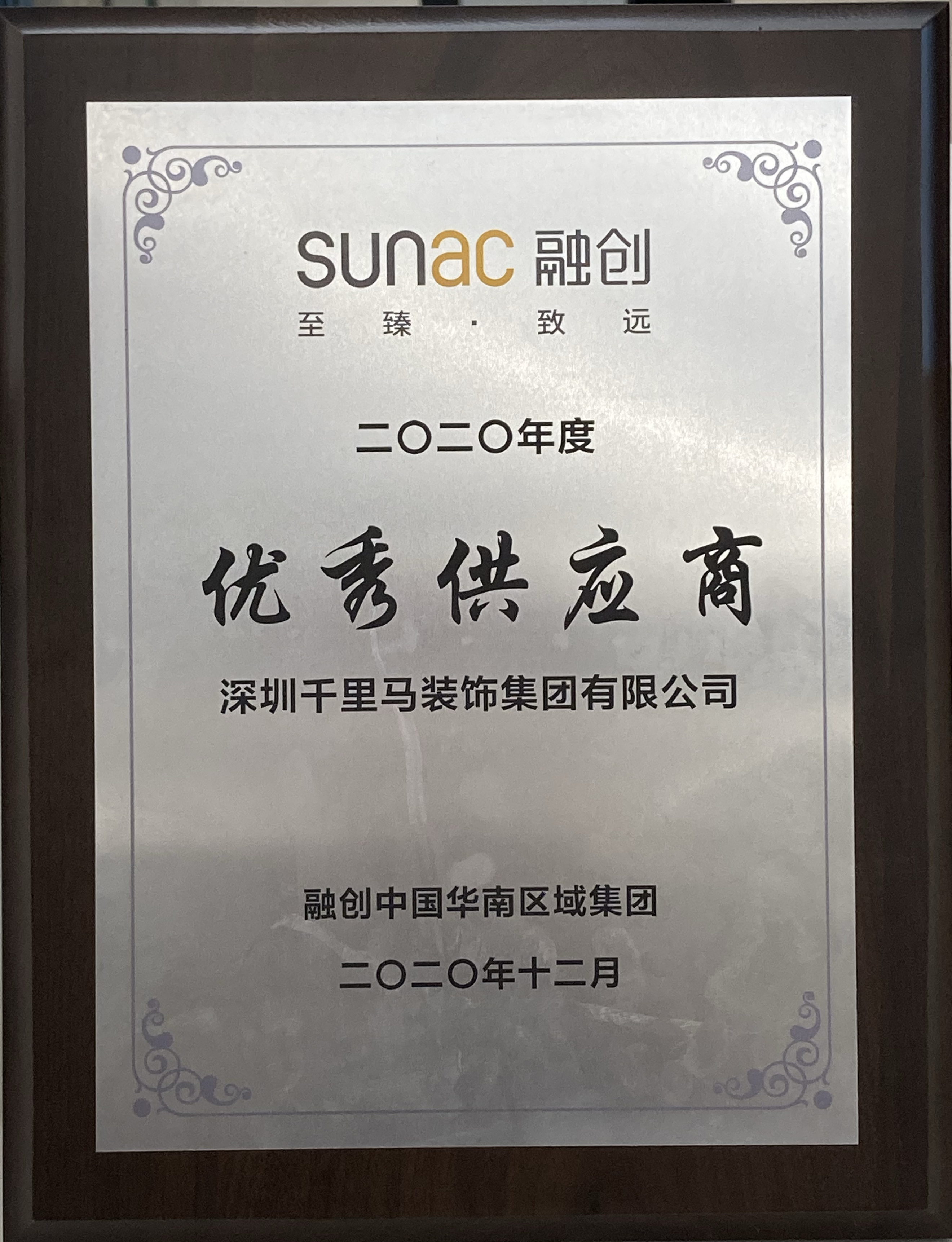 近日,深圳千里馬裝飾集團再獲融創中國華南區域集團頒發的“2020年度優秀供應商”稱號,這是我司自2018年以來連續第三年獲得此項殊榮,此外,我司今年還同時獲得了集團頒發的“2020年度攻堅克難”獎。