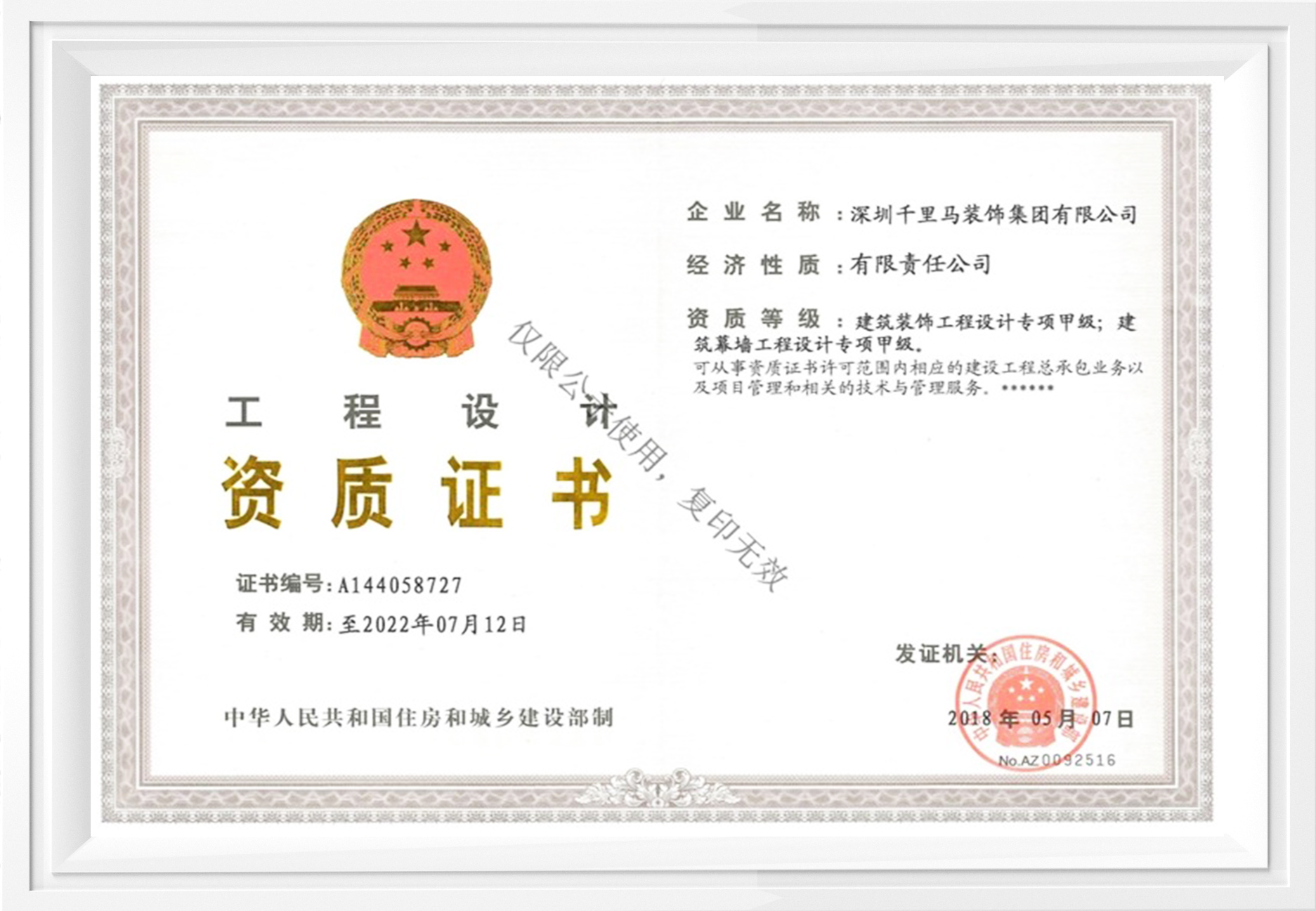 建筑裝飾設計甲級、建筑幕墻設計甲級