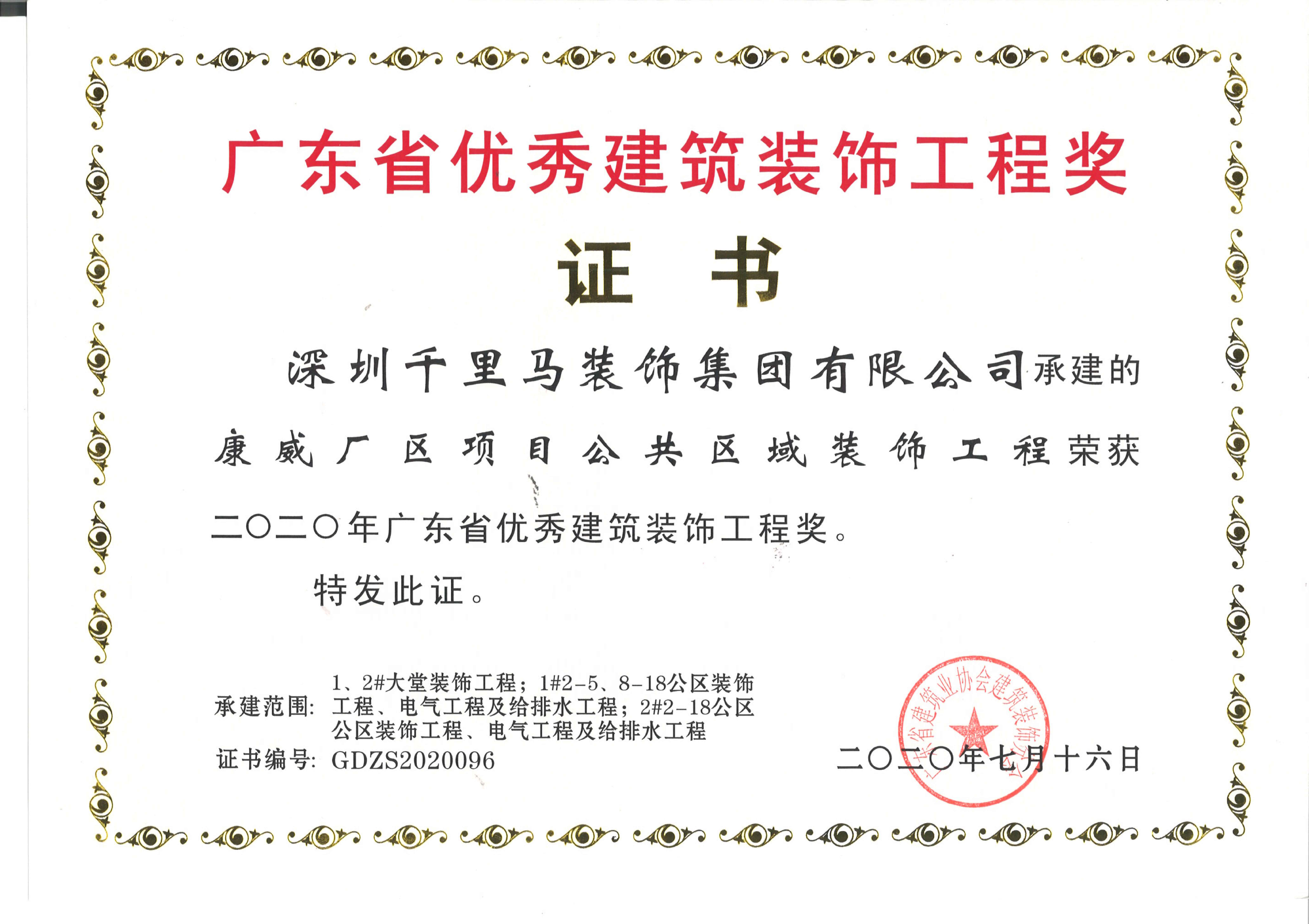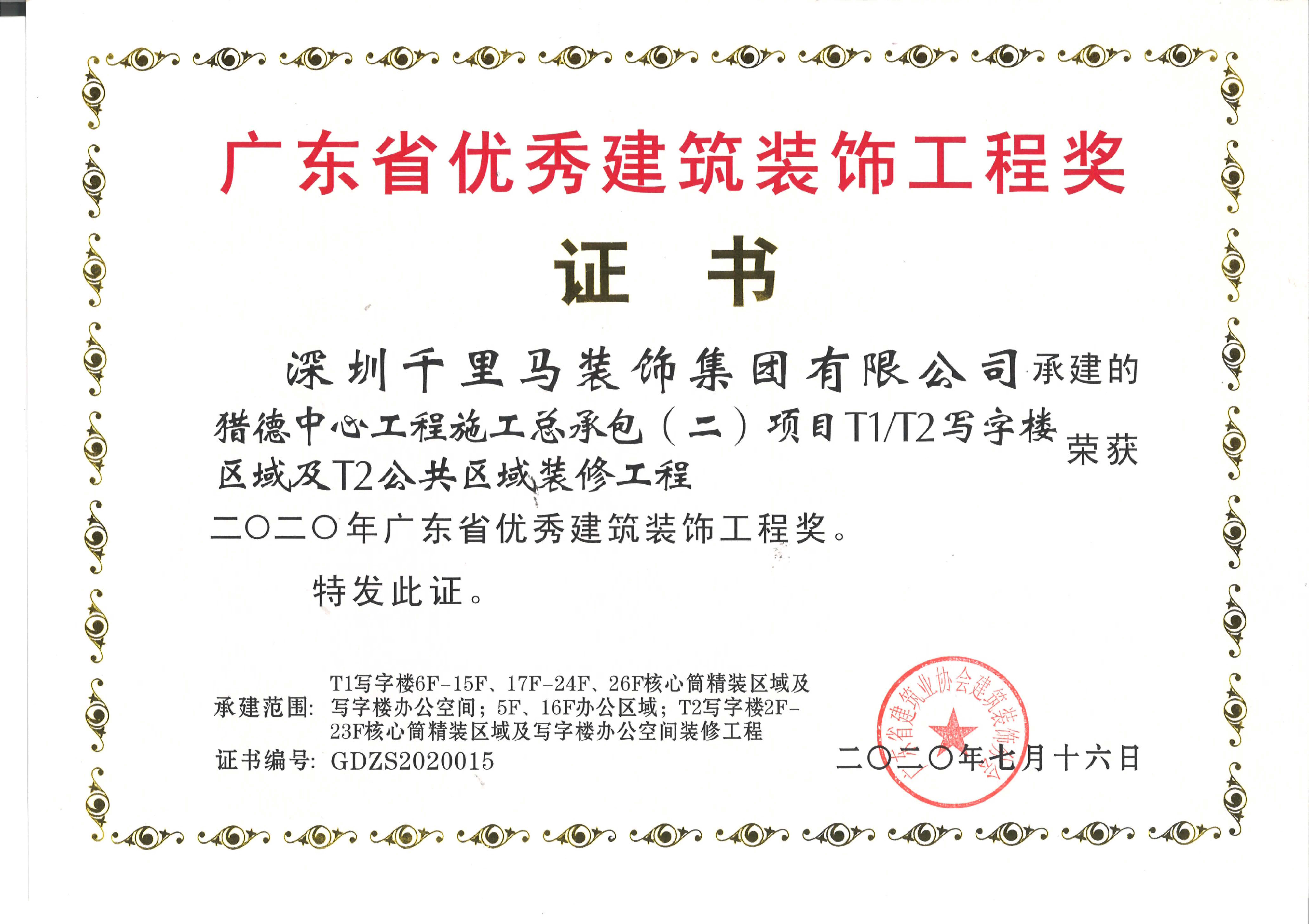 2019年廣東省優秀建筑裝飾工程獎