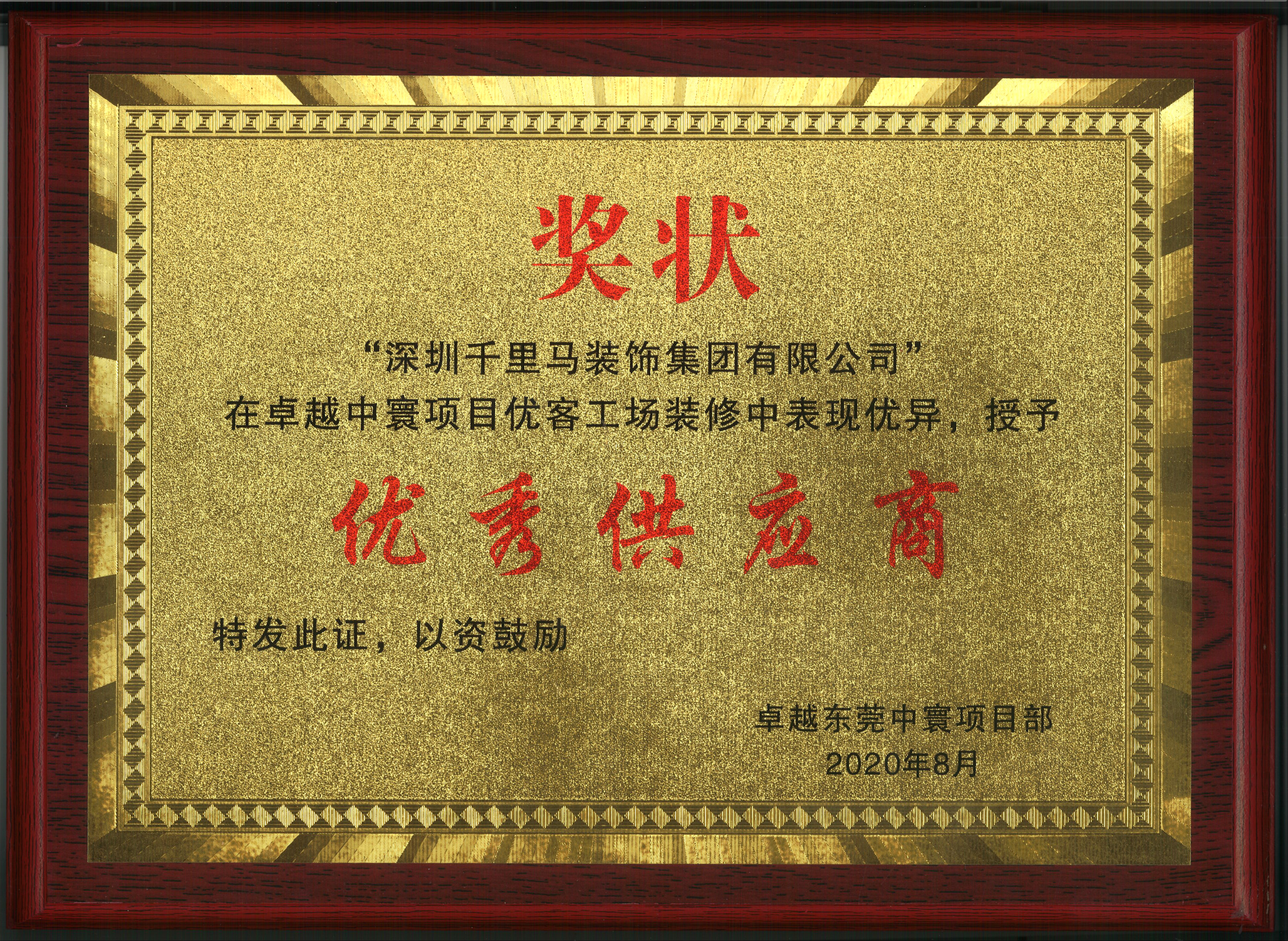 2020年 優秀供應商 卓越中寰項目