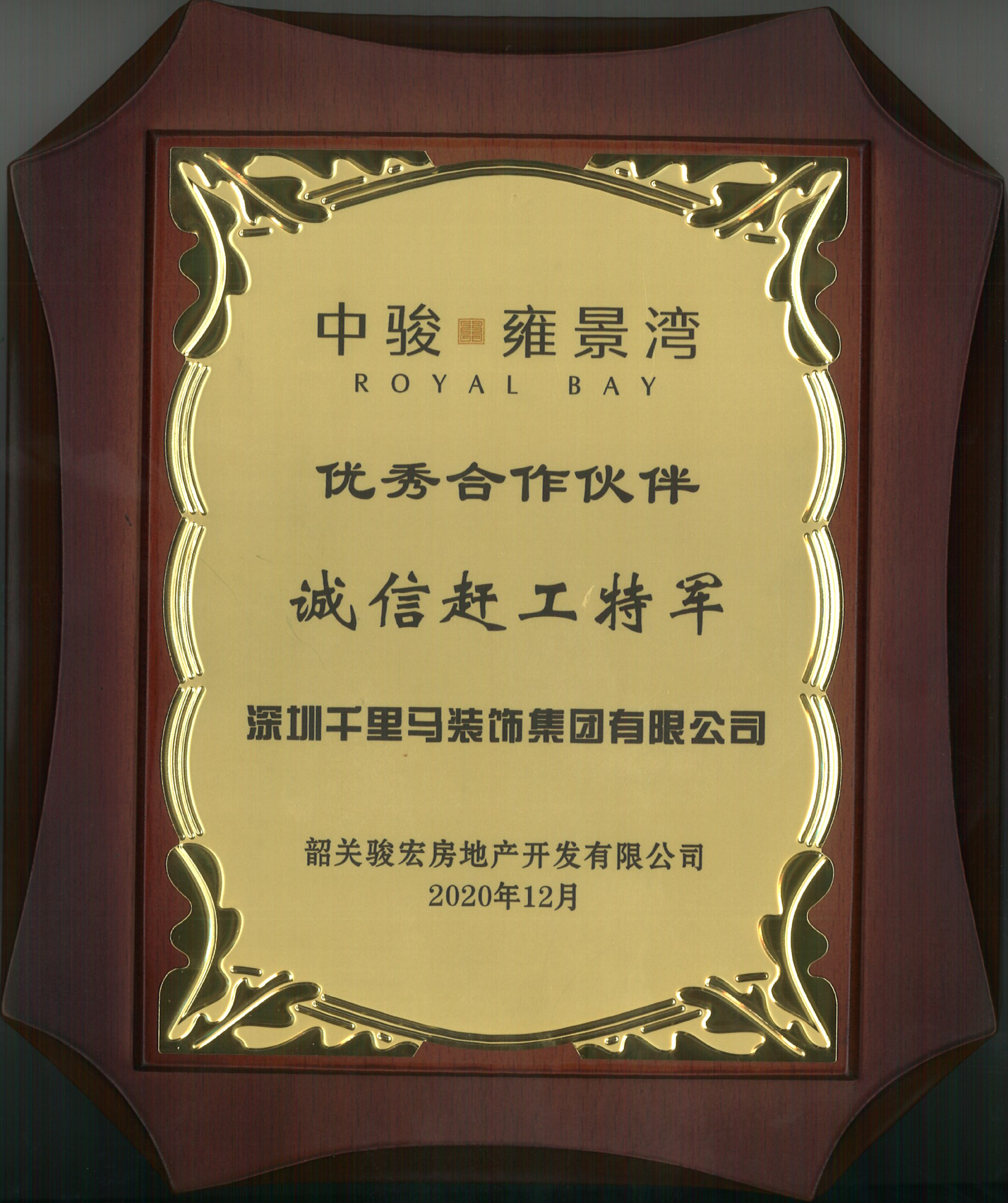 2020年 優秀合作伙伴 中駿雍景灣