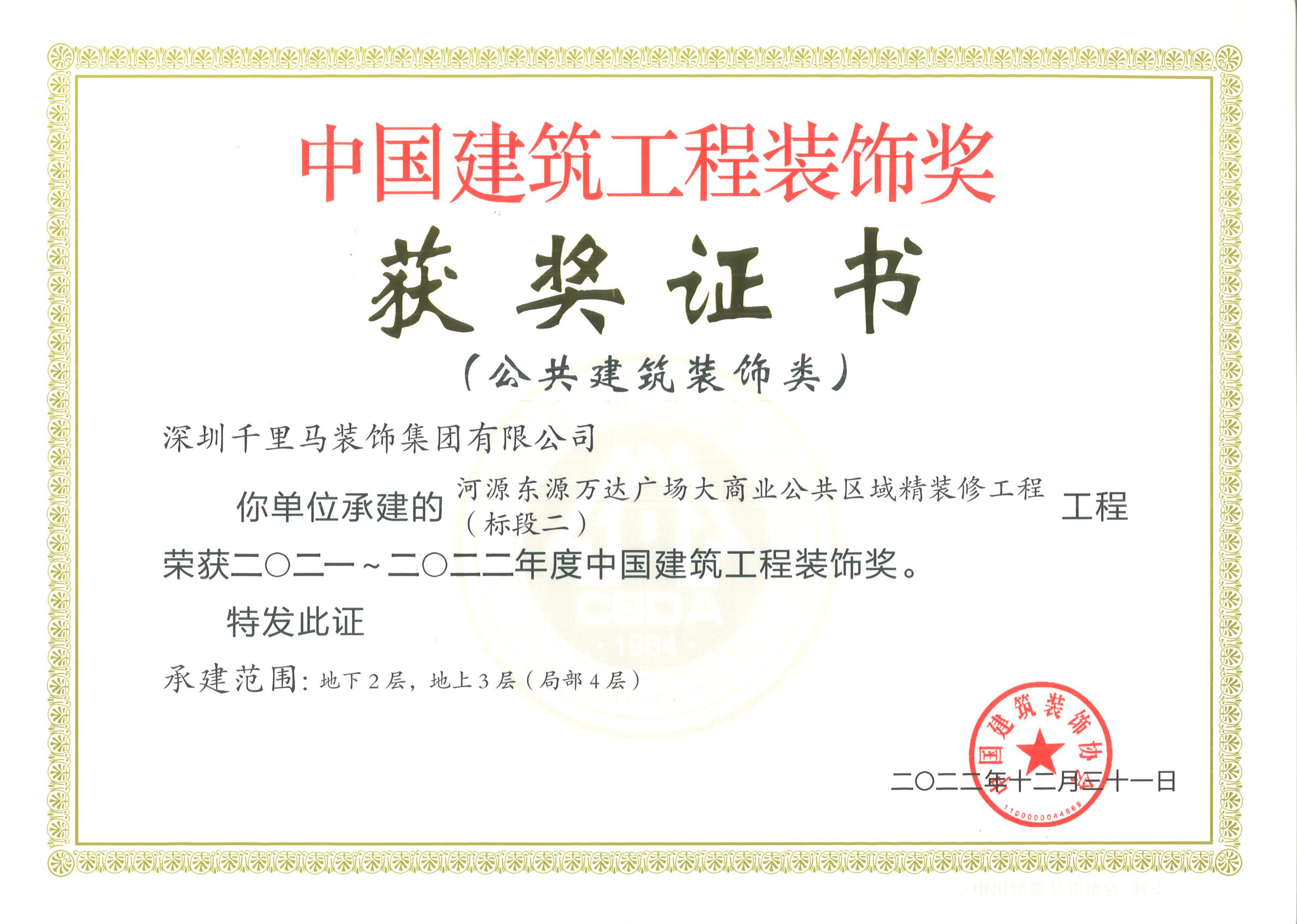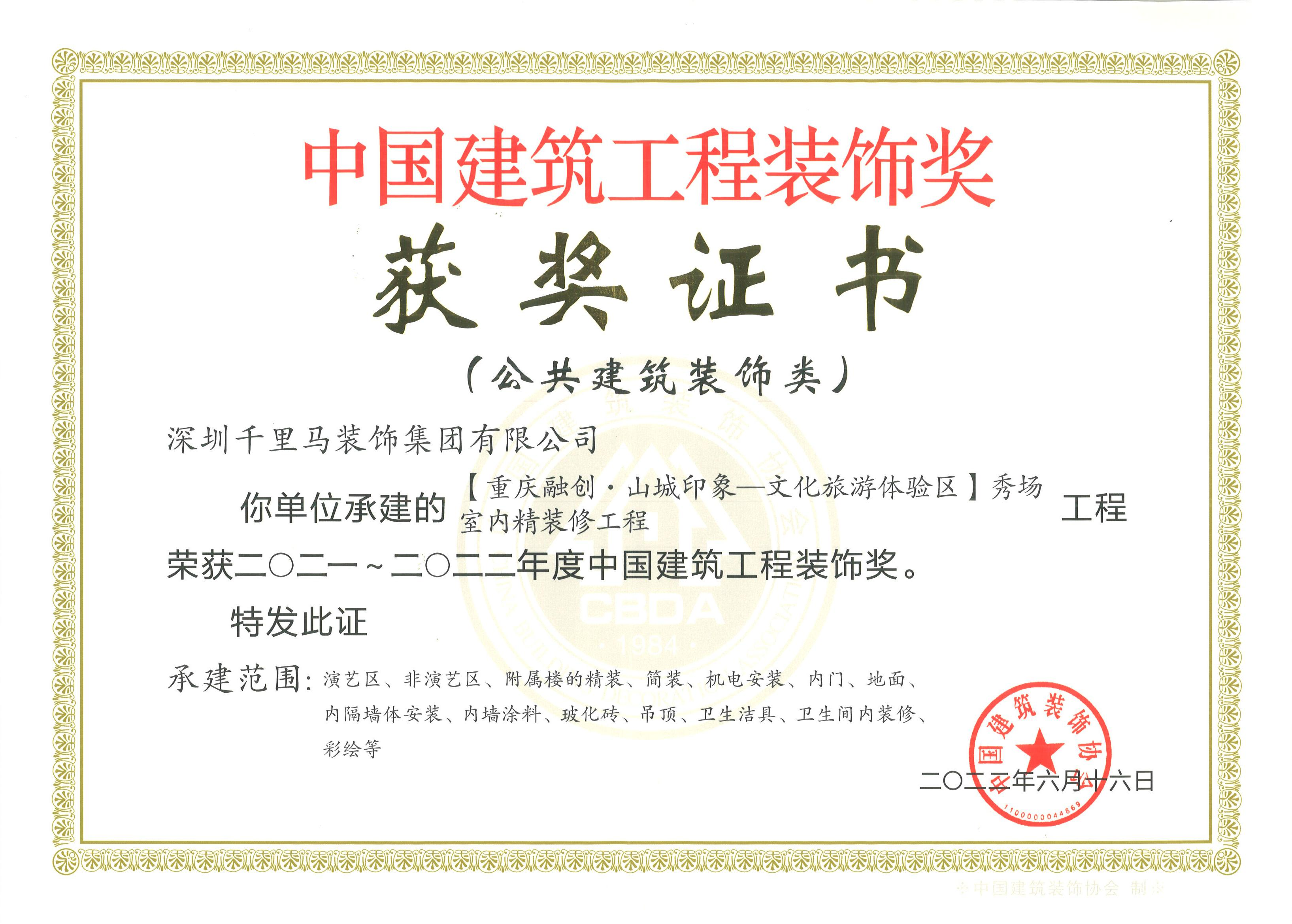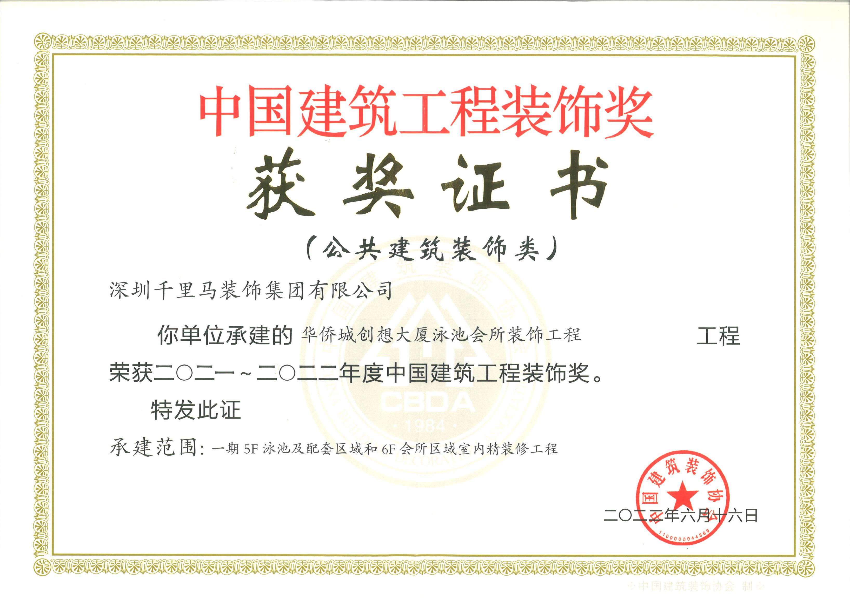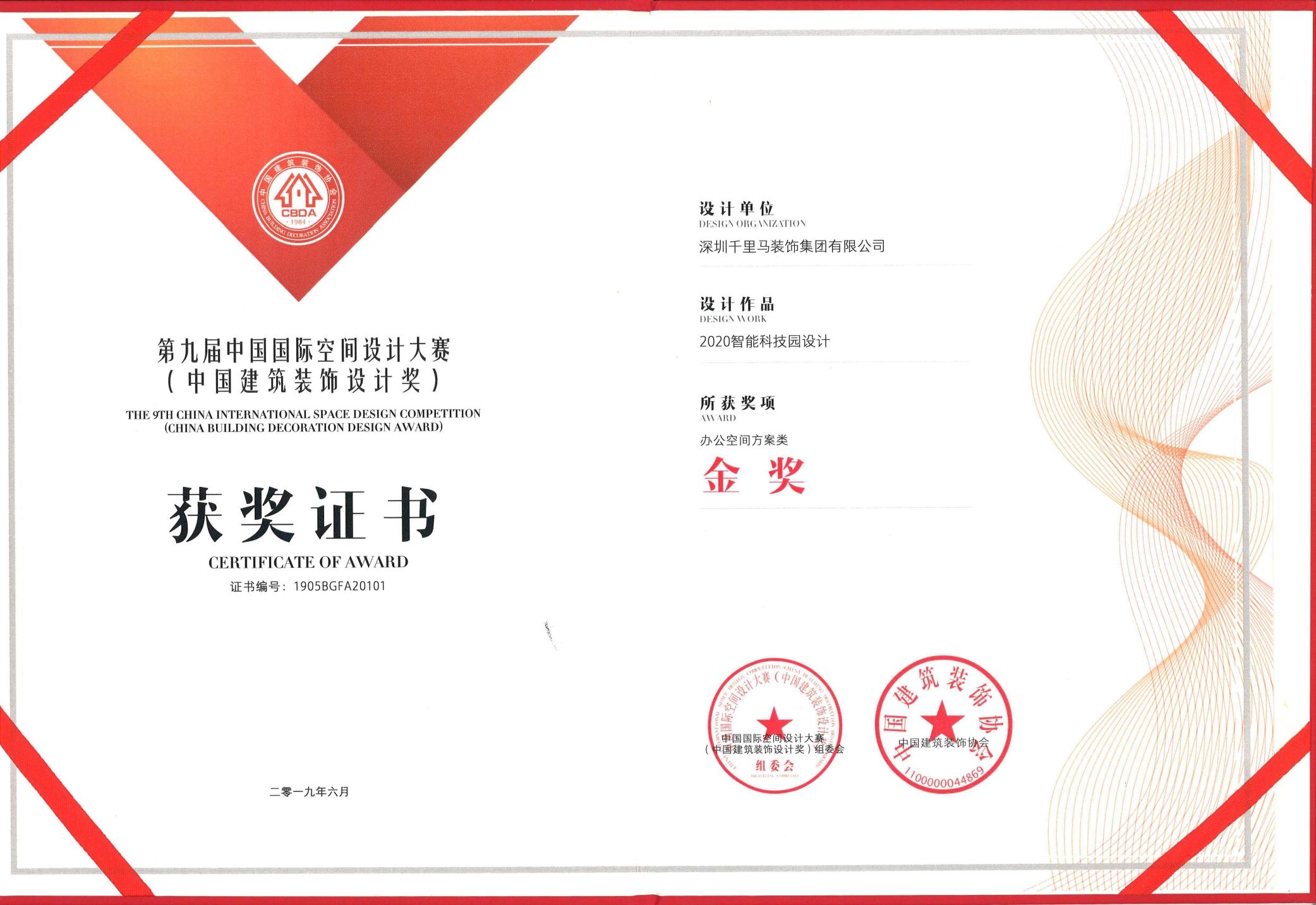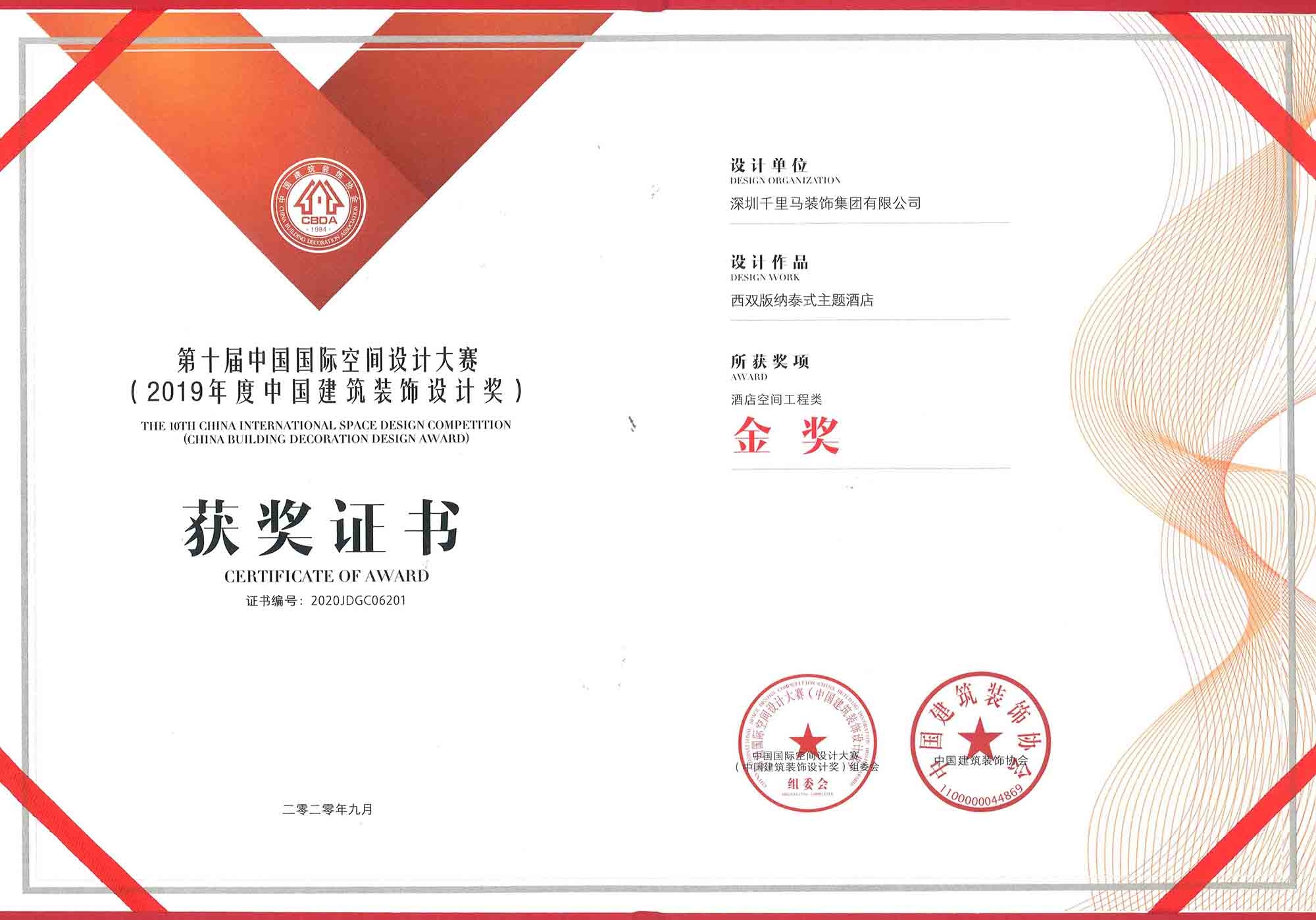 2019年 中國建筑裝飾設計金獎
