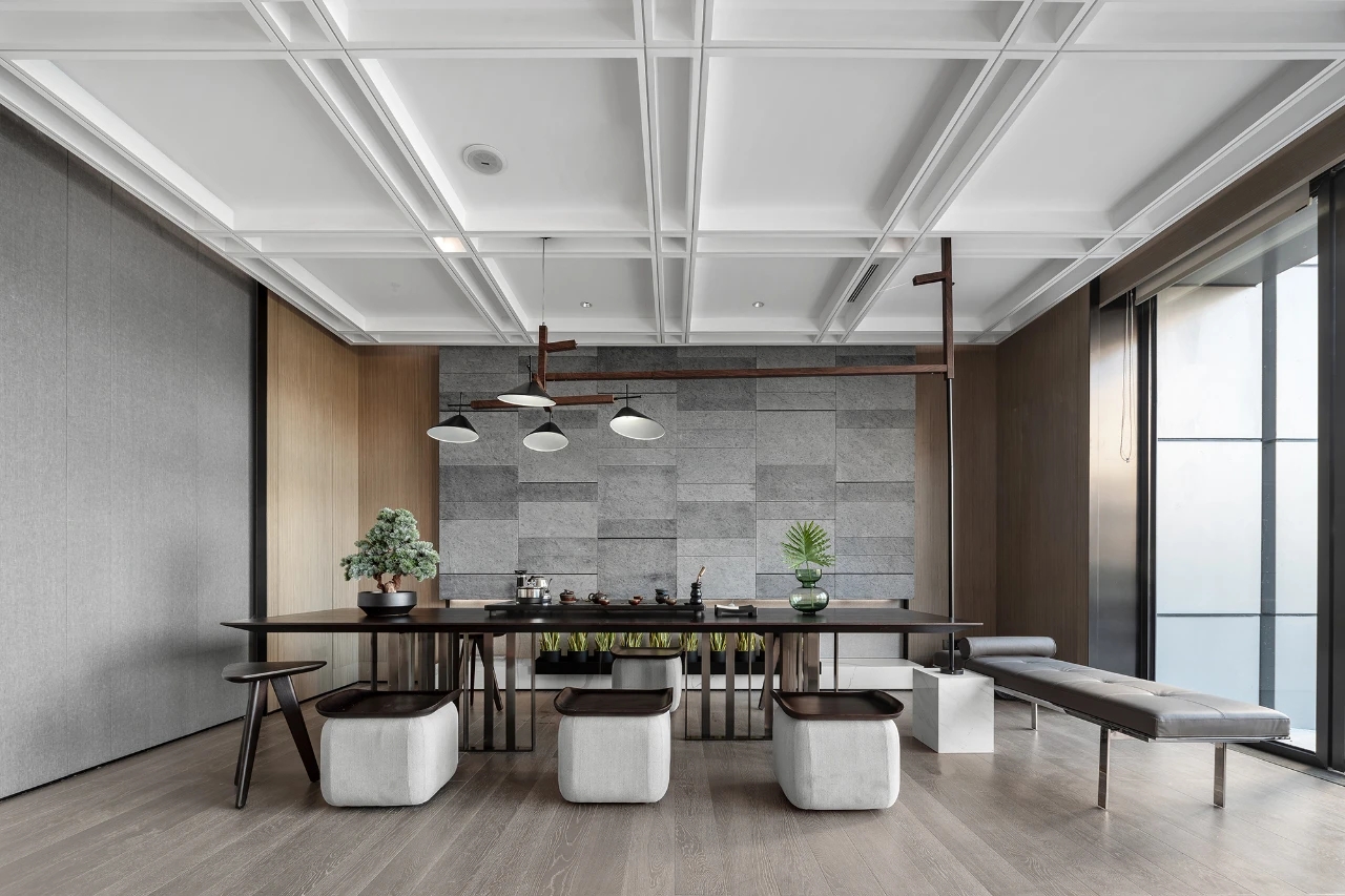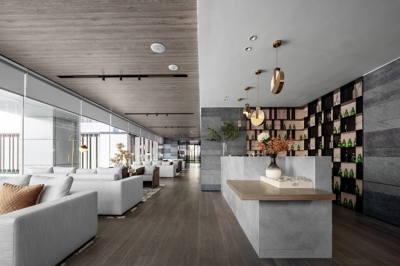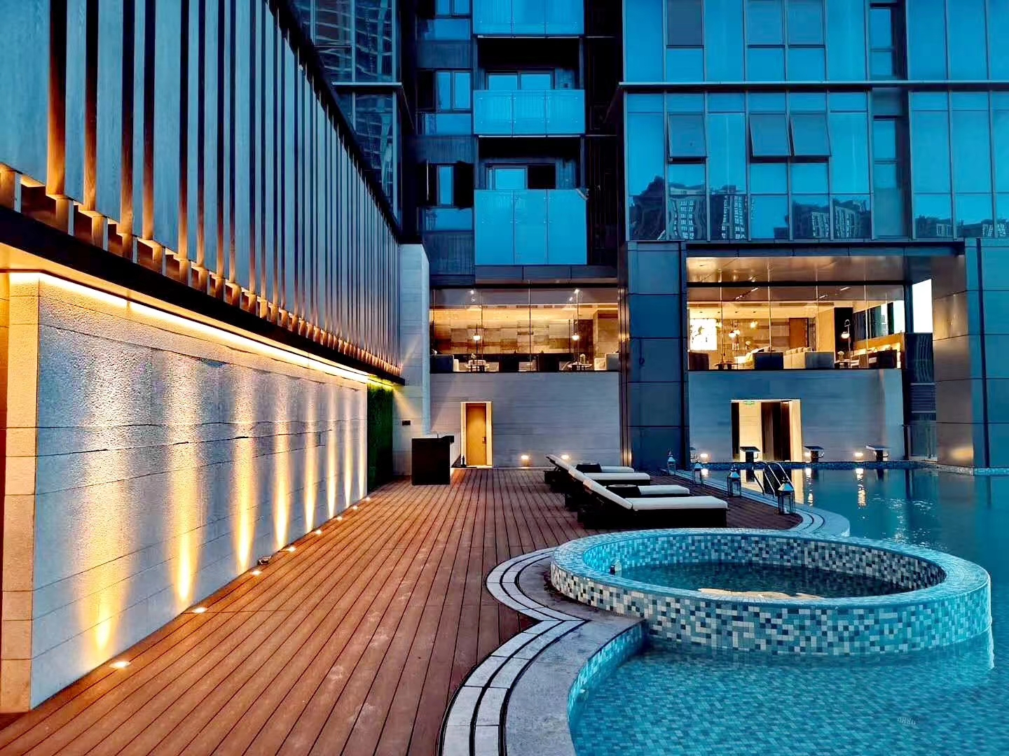 建筑面積1800㎡,我司負責售樓部的影音室、約談區(qū)、接待區(qū)、沙盤區(qū),會所的茶藝室、瑜伽室、閱讀室、泳池、更衣室。該項目難點在于工期短、標準高、任務(wù)重。施工過程需要協(xié)調(diào)大量工種,24小時不間斷穿插施工,對于工期、質(zhì)量、安全保證方面是一個巨大的考驗,且受新冠疫情影響,大量工廠還未開工,而項目所使用的定制異形不銹鋼屏風、不銹鋼柜子、異形鋁板、進口潔具、進口馬賽克等加工周期長且工藝復(fù)雜的材料,對采購與運輸工作帶來巨大挑戰(zhàn)。